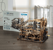 Unleash your inner engineering skills with this exquisite self-assembly 3D wooden puzzle. The Marble Night City with Waterwheel is a beautiful combination of science and machines, complete with Tower Distributors, track race balls, and a waterwheel. Set it up and crank the handle to watch the marbles run down the slopes and turns. Experience the magic of engineering!